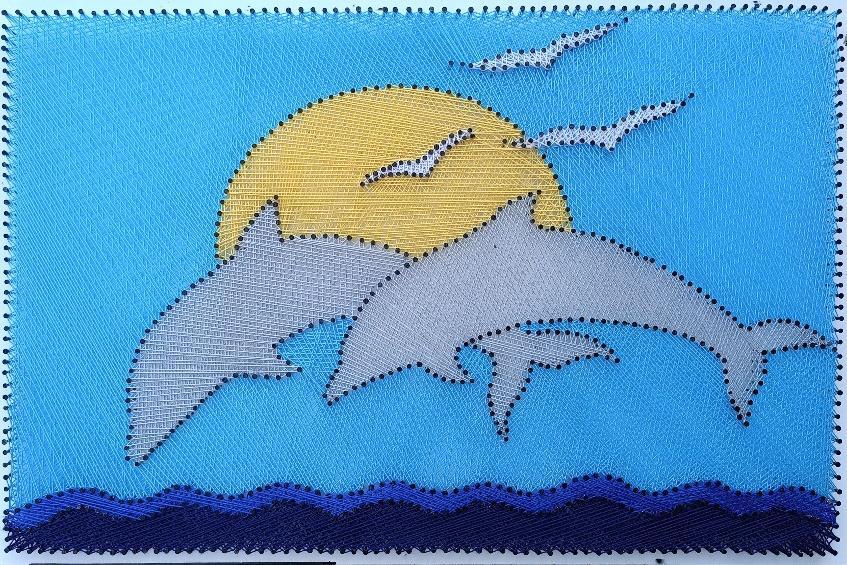 enrole um conjunto de pregos para formar representações geométricas, abstratas ou outros tipos de figuras. Este procedimento geralmente é realizado sobre base de madeira. pintado ou furado e com ele qualquer ideia pode ser reproduzida.